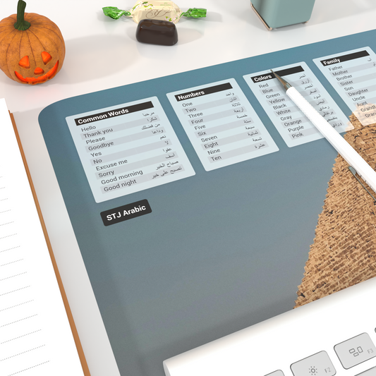 XXL Arabic Desk Mat – 100 Essential Arabic Words & Phrases for Easy Learning | Perfect for Language Lovers