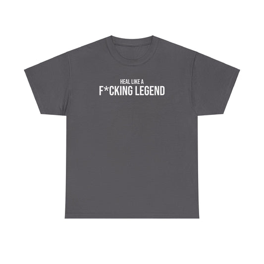 Men Heavy Cotton Tee – ‘Heal Like A F*cking Legend’ | Mental Strength, Relaxation, and Wellness Shirt